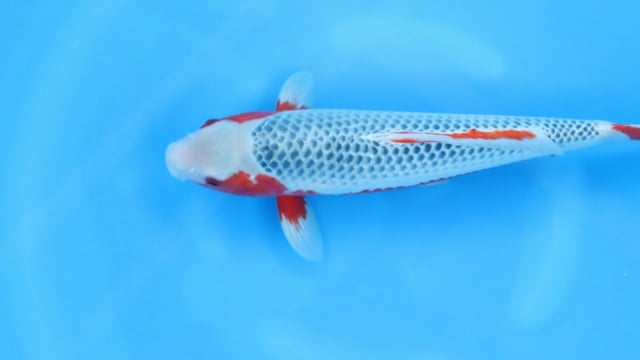 This koi offers super quality for the price. Otsuka is a farm we love to buy koi from, the varieties available make it better for us to offer a fantastic selection. The farms Asagi are of the highest quality and win many koi shows in Japan and around the world. Key points for this koi is the kado gin that sits on the back edge of the scale, the scale reticulation is good, Beni (red) is clean and well placed on the head and the belly line making this koi a great koi to add to any collection and to show in the Uk.