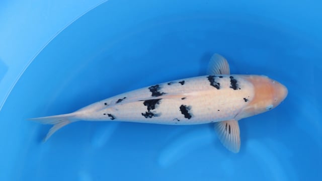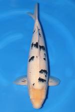 A superb example of a Bekko. Strong sumi quality and nice white shiroji that will improve with age. The body and bone structure is also good and in the right pond and environment this koi has the potential to grow to decent size.