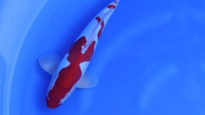 The doitsu scalation is tidy and well aligned, enhancing the clarity of the pattern and overall refinement. With a well-balanced body, smooth topline, and a solid tail tube for its age, this koi shows very good growth potential. A striking Maruhide Doitsu Kohaku with strong presence and lasting appeal as it matures.