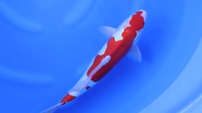 The doitsu scalation is tidy and well-aligned, enhancing the clarity of the pattern and giving the koi a sleek, refined appearance. A strong head, good body volume for its age, and a solid tail tube indicate very good growth potential. A high-quality Maruhide Doitsu Kohaku well suited for both pond enjoyment and future development.
