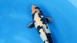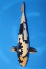 A superb example of a Doitsu Shiro Utsuri with good sumi quality and shiroji. The pattern is well balanced and easy to understand the fish. Once this is in cooler water the shiroji should condition up and sumi thicken.