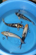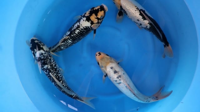 Takatatsu offers fantastic high quality Gin Rin Aragoke and these are exceptional. With different colours and styles these will grow into superb strong bodied koi with impressive scales. These are very similar to the Dainichi Black Zeus in style.