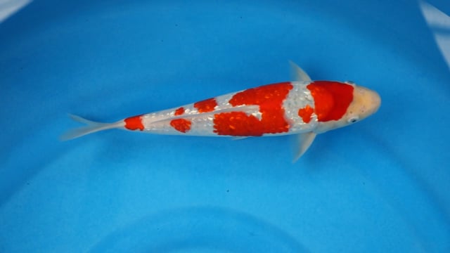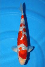 An excellent koi for showing in Japan. This Gin Rin Goshiki has really nice beni and Gin Rin quality and as the sumi darkens over the coming months this could become a really great fish.