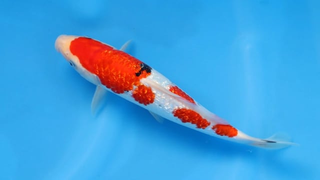 This Koi has been specially selected and raised during the summer at Exclusively Koi. This has been raised on Saki Hikari Growth and Colour food during this period to maintain the quality and stature of the Koi. This Koi has been raised for this time of year to offer quality Koi throughout Autumn Harvest.