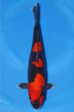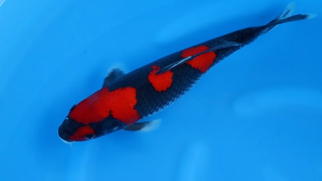 Super example from Aoki, nice clean koi with super pattern and dark skin. Aoki is a fantastic breeder for this variety and produces this real dark sumi and floating beni goshiki.