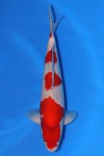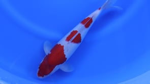 The light base provides a crisp contrast to the vibrant red plates, while the subtle underlying reticulation characteristic of Goshiki is beginning to emerge and is expected to deepen with age and development. Clear fins, solid conformation, and an attractive pattern layout make this nisai an appealing koi now, with promising potential for increased depth, contrast, and overall refinement as it matures.