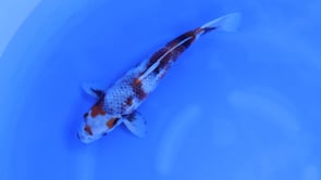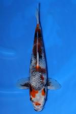 The scalation shows attractive netting that enhances the kage effect, and the motoguro in the pectoral fins contributes to its traditional Showa character. With a solid frame, good skin quality, and developing sumi, this koi has appealing presence now and promising future potential as the pattern continues to refine with age.