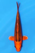 This Kin Matsuba tosai from Ogata Koi Farm displays striking metallic brilliance with bold reticulation.