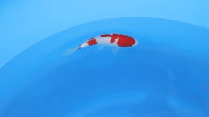 This tosai Kohaku from Ogata Koi Farm, Japan displays a bright, youthful elegance with a classic Kohaku style pattern flowing cleanly from head to tail. The beni is vibrant and even, showing strong colour depth for its age with soft, developing kiwa that suggests refinement as the koi matures. The shiroji is fresh and luminous, providing excellent contrast and enhancing the sharpness of the red pattern. A well-balanced body line, smooth skin quality, and clean fins complete the presentation. With its pleasing pattern placement and promising colour quality, this young Kohaku offers excellent potential for future development.