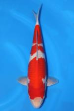 This Kohaku nisai from Sakamaki Koi Farm displays a bold and elegant two-step style pattern with excellent color depth.