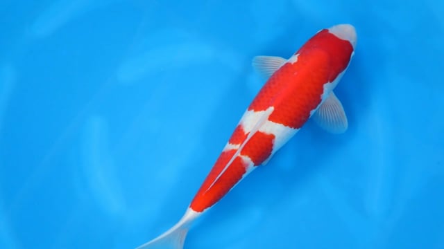 The body shows strong nisai development with a solid frame, smooth skin quality, and balanced pectoral fins. As this koi grows, the beni is likely to deepen further while the shiroji brightens, enhancing the classic and timeless Kohaku contrast.
