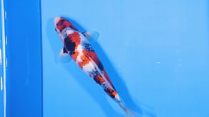 This Koromo Showa tosai from Momotaro Koi Farm displays an intricate blend of traditional Showa coloration with the textured elegance of the Koromo bloodline.