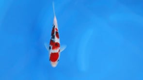 This Sanke tosai from Ogata Koi Farm displays a bright, youthful three-color balance with strong refinement for its age.