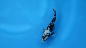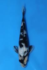 This Tosai Shiro Utsuri from Ogata Koi Farm (Japan) shows a refined, slender young body with a smooth topline and promising structure for future growth. Rich, glossy sumi blankets much of the back and shoulders, broken by bright islands of clean shiroji that create a dynamic, flowing pattern down the body. The head features an engaging mix of black and white markings that give strong visual impact while maintaining balance with the overall design. Both pectoral fins display attractive motoguro, enhancing symmetry and reinforcing the classic Shiro Utsuri presence. With developing skin quality and consolidating sumi, this Tosai offers strong potential as its pattern sharpens and contrast deepens with maturity.