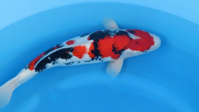 This Showa offers super quality for the price. Kase is a farm we love to buy koi from, the varieties available make it better for us to offer a fantastic selection. The Beni (red) is deep and clean and sumi (black) developing as it should. Being female this koi should get to a good size and maintain to carry and the Kase attributes its lineage is known for.