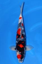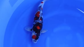 The body conformation is solid and well proportioned for nisai, with a smooth topline, good shoulder strength, and a steady taper to the tail tube, indicating reliable future growth. Skin quality is very good, supporting strong colour definition, while the sumi shows depth and stability with further refinement expected as the koi matures. A classic Kase Showa with strong character and clear long-term potential.