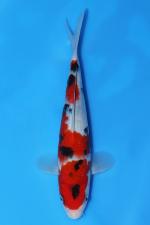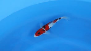 The body is well balanced for tosai, showing a smooth topline and good tail tube development, indicating steady growth potential. Skin quality is very good, enhancing colour clarity and contrast, while the sumi is expected to continue rising and strengthening with maturity. A classy Ogata Showa with clear upside for future development in both pond and show settings.