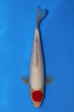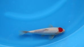 This Tosai Tancho from Ogata Koi Farm, Japan features a clean, streamlined young body with balanced proportions and a graceful silhouette that shows strong growth potential. The standout feature is its well-defined, vibrant red Tancho mark centered neatly on the head, displaying solid color quality and pleasing symmetry. The shiroji is bright and even across the body, giving the koi a refined, elegant appearance and enhancing the impact of the head marking. Clear skin quality and a smooth frame suggest promising development as it matures, making this young Tancho an eye-catching and classic example with excellent future pond presence.