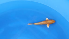 This Yamabuki Ogon tosai from Ogata Koi Farm showcases a brilliant, uniform metallic presence with excellent clarity.